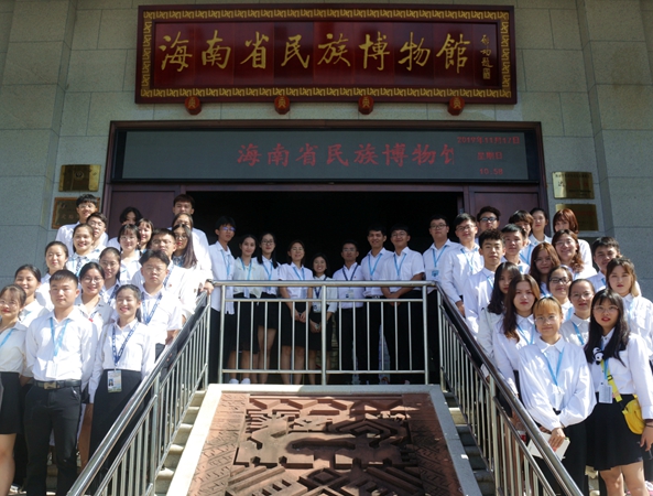 在海南省民族博物馆,讲解员为同学们介绍了各民族服饰的起源、发展、传承,各民族房屋的构建、材质、运用,让同学们更进一步了解和加深对中国民族文化的认知,增强文化自信。